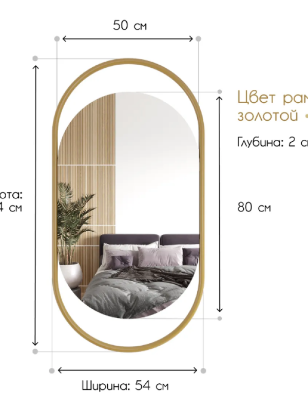 Зеркало «Muse». Артикул GMZ-02-1-1/2/3 Идеальная симметрия и простая изысканность ар-деко в виде овального настенного зеркала в металлической раме способны дополнить интерьер, выполненный в любом стиле, начиная от винтажного и заканчивая авангардным. Зеркальное полотно является продукцией известного бельгийского производителя AGC, который славится непревзойдённым качеством своих зеркал. Идеально подходит для ванной комнаты или спальни.Характеристики:– профиль рамы круглый, диаметром 20 мм; – габариты – 1040х540х20 мм; – размер зеркального полотна – 800х500 мм, толщина – 4 мм; – вес – 7 кг; – устойчивая матовая порошковая окраска; – возможные цвета – золотой, чёрный, белый; – саморезы для крепления к стене в комплекте; – гарантия – 1 год.